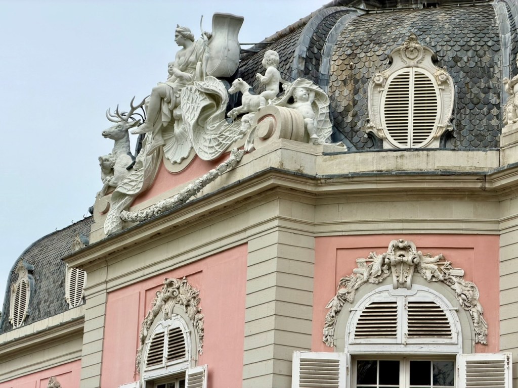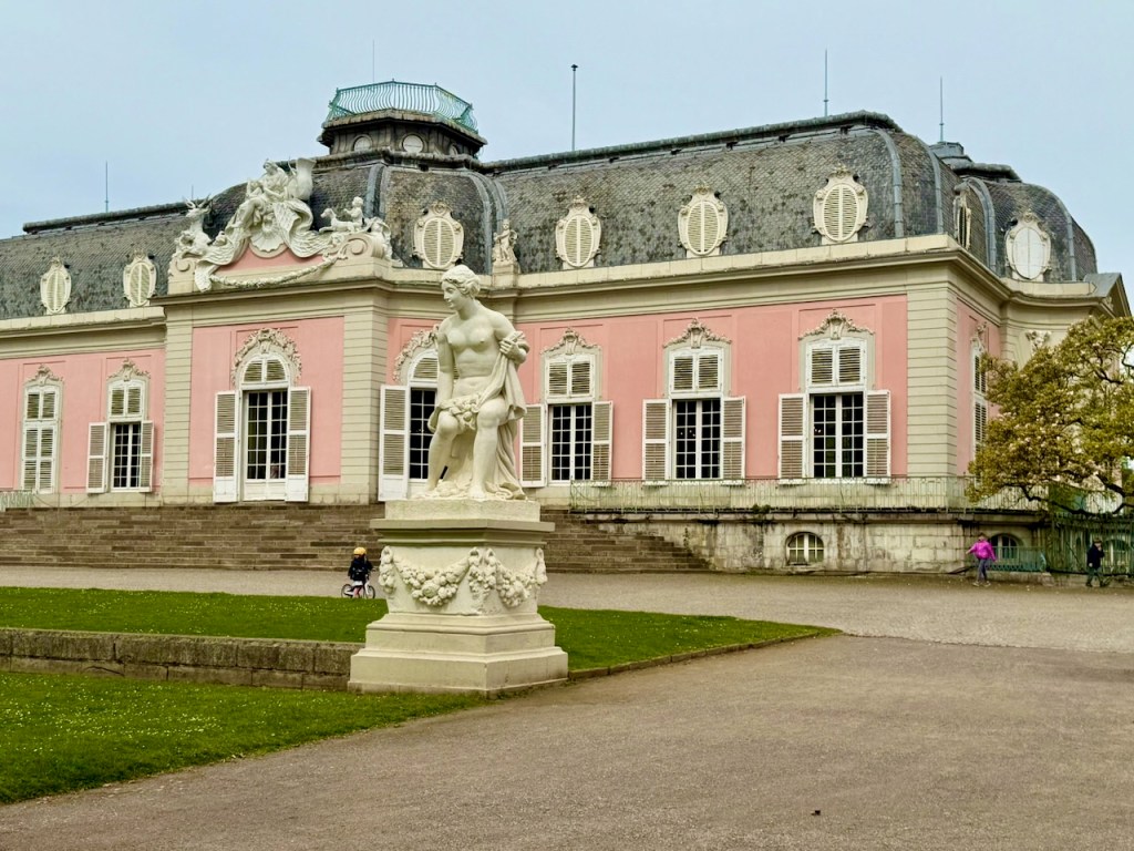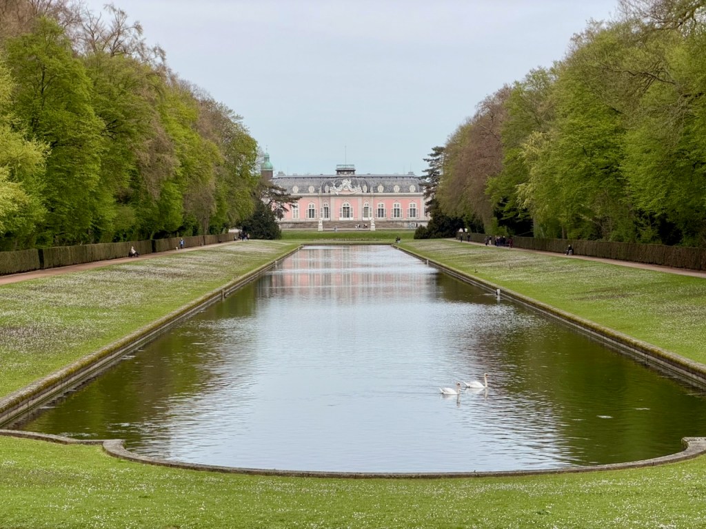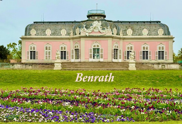 Schloss Benrath on sekä linna että laaja puistokokonaisuus Düsseldorfissa, Nordrhein-Westfalenissa, Saksassa. 1700-luvun jälkipuoliskolla vaaliruhtinas Karl Theodorin metsästys- ja huvilinnaksi rakennettu vaaleanpunainen linna oli hieno nähtävyys käydä sunnuntaina. Iso puisto kävelylenkiksi ja hieno veden reunalla oleva linna sisältä. Luonnonhistoriallisessa museo-osassa emme ehtineet käydä.