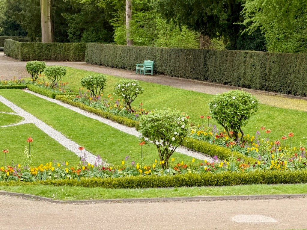 Linna on laajalla 60 hehtaarin laajuisella luonnonpuistoalueella, mutta sen vieressä on myös tällaista puutarhamaista puistoa ja lampia.