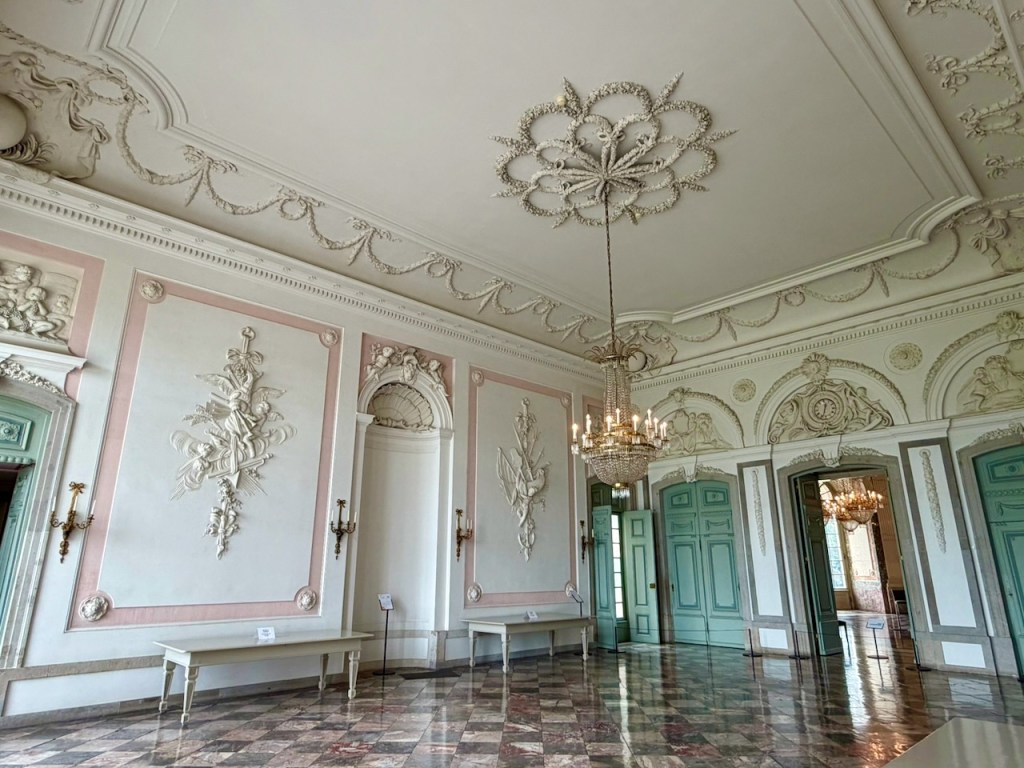 Upeita siistejä ja koristeellisia huoneita kiersimme. Linna itse toimii taide- ja arkkitehtuurimuseona. Rakennuksen sisätilat on restauroitu alkuperäiseen loistoonsa, ja ne esittelevät aikakauden taidetta, huonekaluja ja käsityötä.