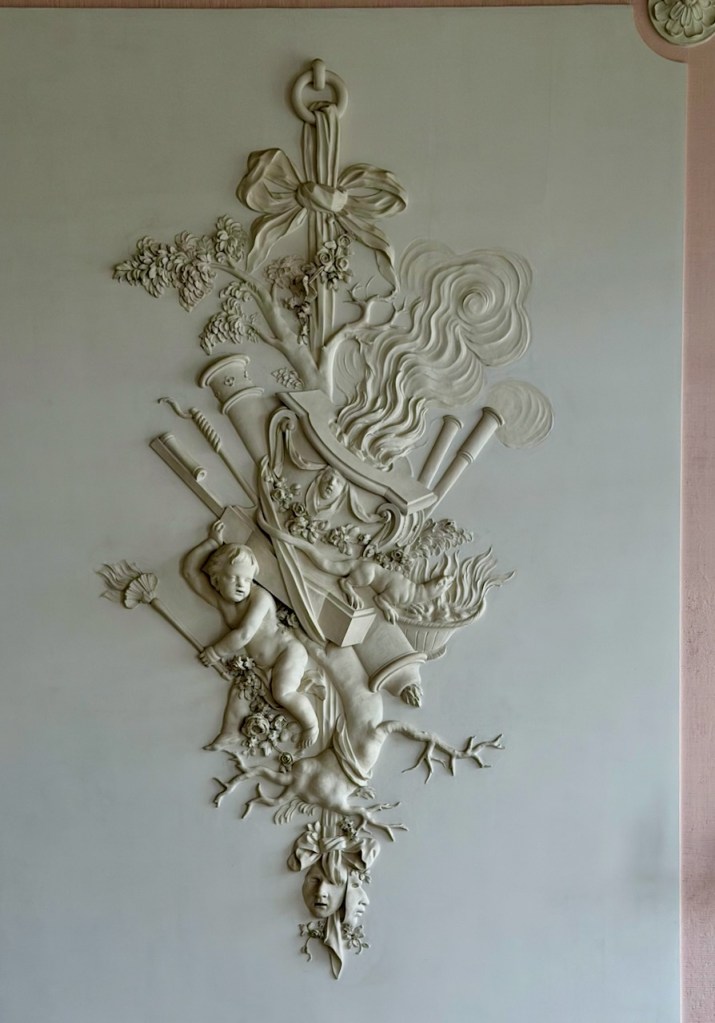 Useissa huoneissa oli näitä koristeellisia tapetteja.