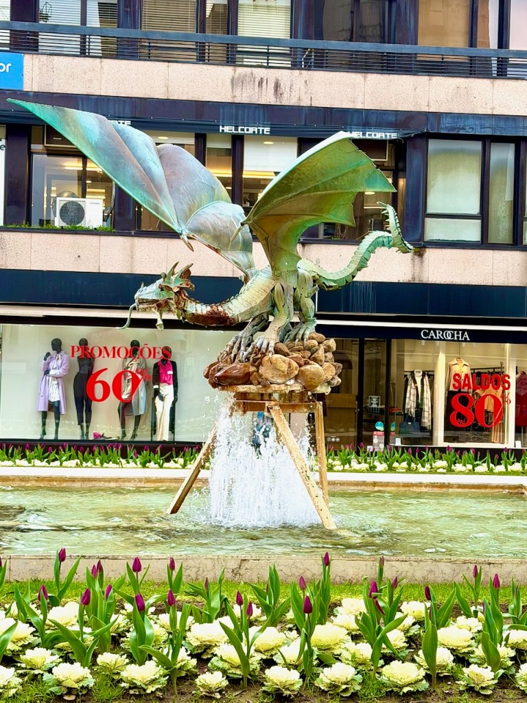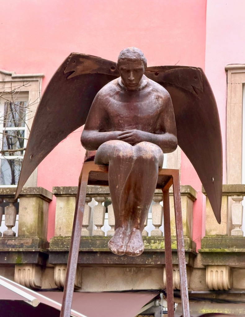 Ennen takaisin parkkihalliin menoa katse kääntyi vielä tällekin kadulle. Ensi kerralla sitten, varataan aikaa vähän enemmän. Braga tuntui erittäin kivalta kävelykohteelta. Kirkkoja, puistoja, aukioita, kahviloita ja ravintoloita ja tietysti myös hämmästyttäviä patsaita, kuten tämä vain kolmisen vuosikymmentä vanha Vartijan patsas.