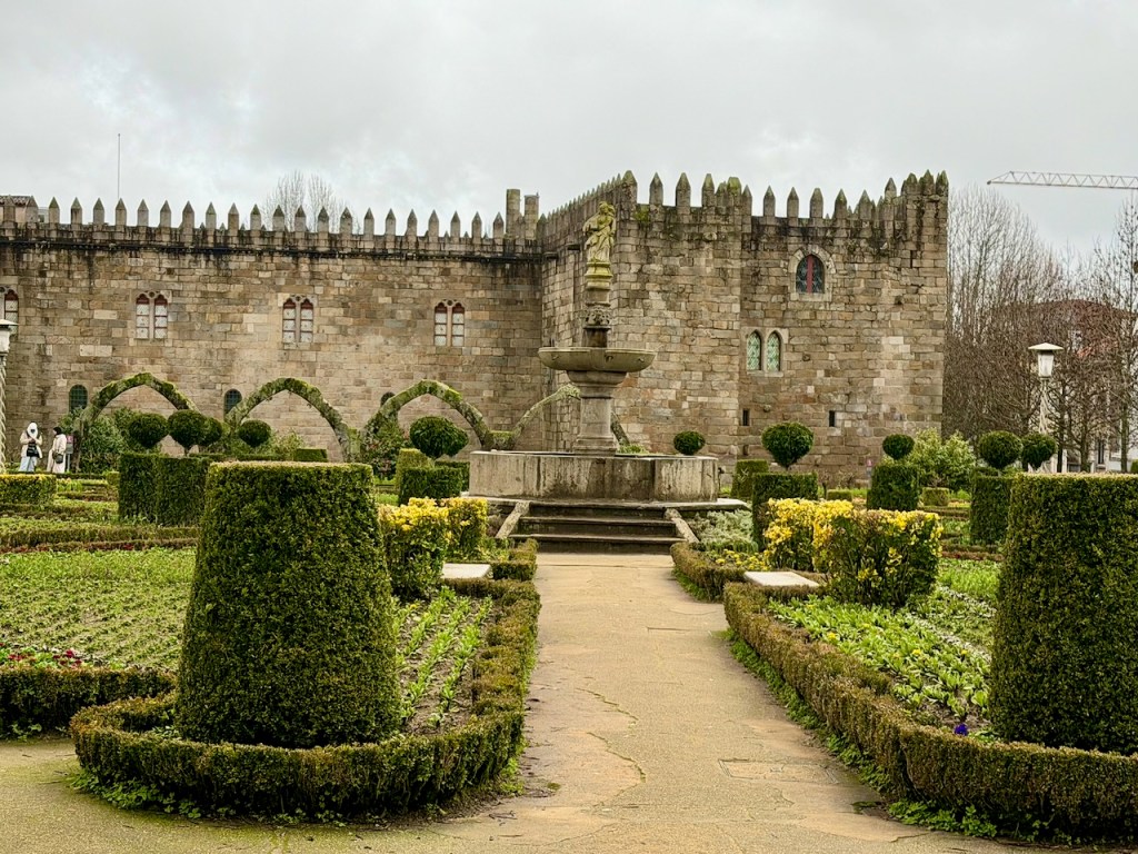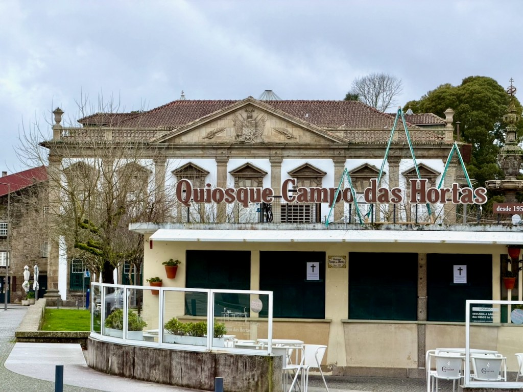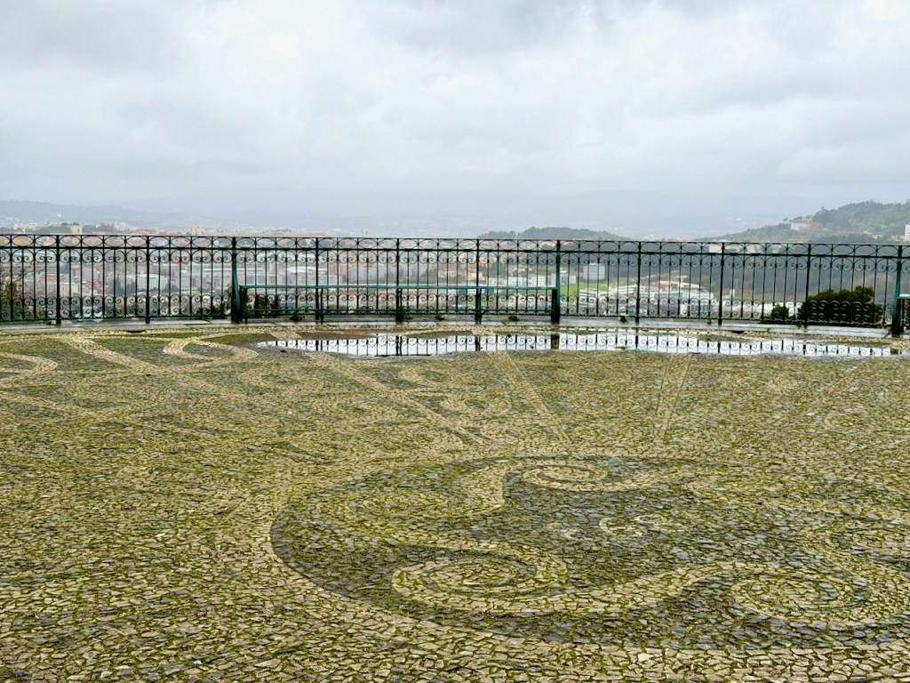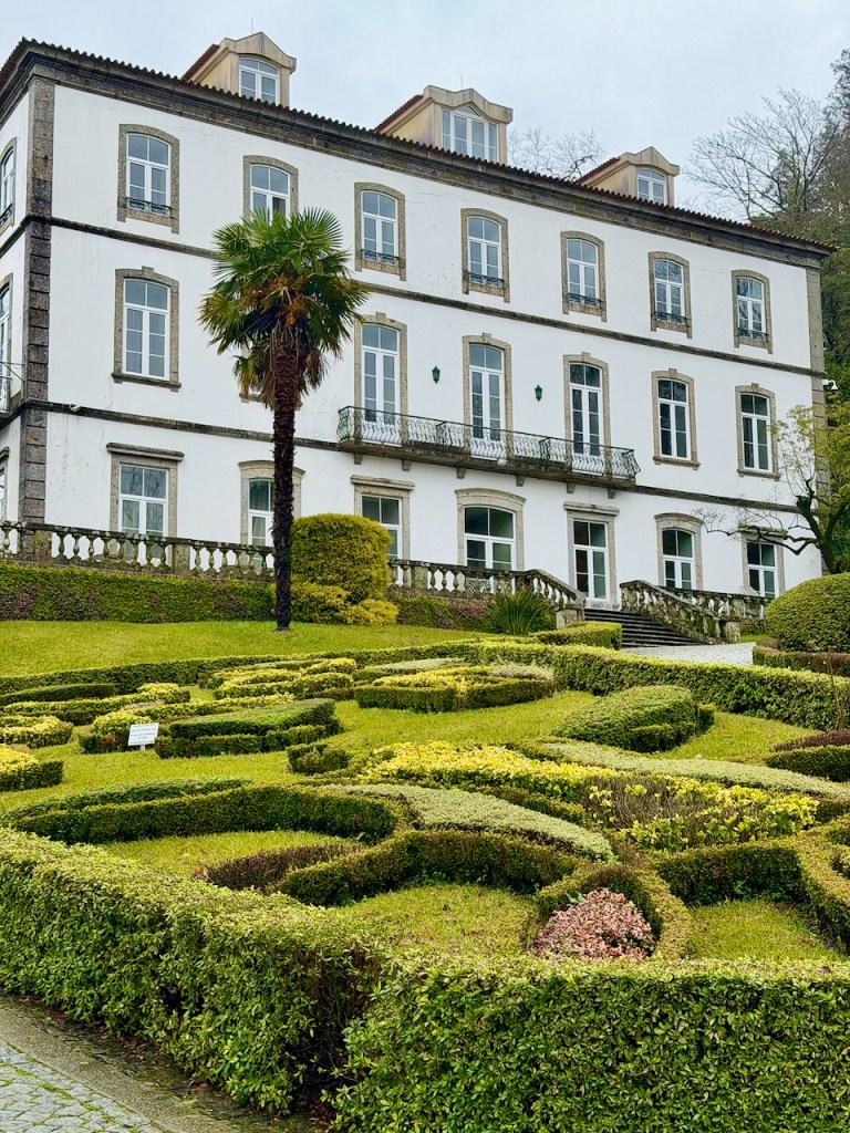 Kävelimme takaisin vähän eri reittiä ja näimme komean Jardim de Santa Barbaran puutarhan patsaineen ja istutuksineen. Puiston reunalla on yksi kaupungin nähtävyyksistä eli Antigo Paço Episcopal, joka on entinen arkkipiispan palatsi. Se ei kuitenkaan ole turisteille sisältä auki, ulkoa sen näkee näin.