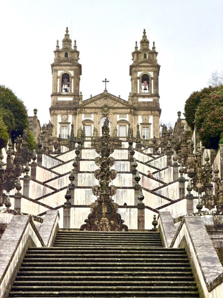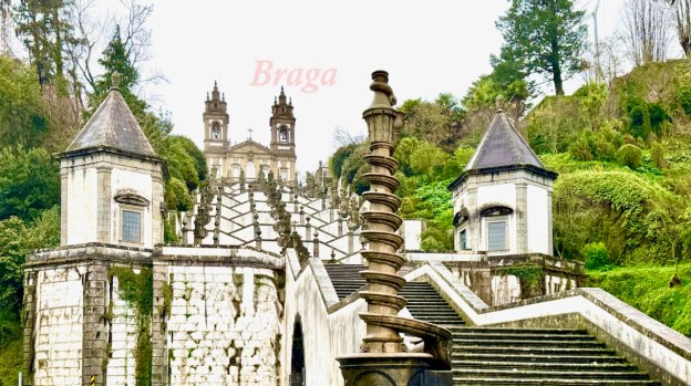 Braga sattui sopivasti automatkalle ajaessamme Portugalia pohjoisesta etelään. Upea pysähdyspaikka! Se onkin yksi Portugalin vanhimmista ja kauneimmista kaupungeista, jota luimme kutsuttavan ”Portugalin Roomaksi” sen lukuisten kirkkojen ja historiallisen tunnelman vuoksi. Bom Jesus do Monte, eli korkealla kukkulalla sijaitseva kirkko oli se, jonka kuva innosti pysähdykseen. Varsinkin sinne johtavat näyttävät portaat.