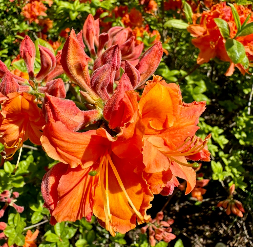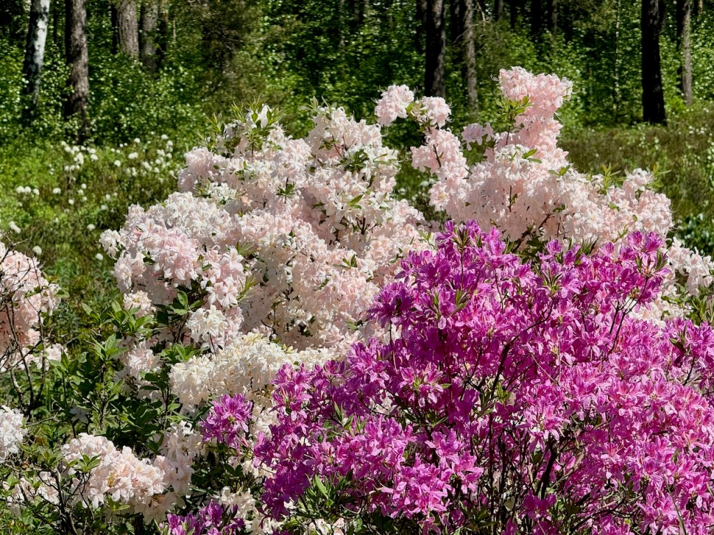 Haagan Alppiruusupuiston jäätelökioskilla odotellaan jo melkein tungosta lähipäivinä, viimeistään kesäkuun ensimmäisellä viikolla. Koko ajan kukat avautuvat ja värit monipuolistuvat. Paikoitellen jo tänään sain ihailla auringonpaisteessa ihailtavia kukkia. Mutta ei kiirettä, seuraavien parin viikon aikana täällä on kyllä nähtävää.