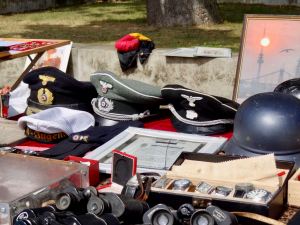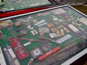 Tämä sotamuistojen pöytä oli mielenkiintoinen. Mitaleja, pikkuesineitä ja hattuja. Näytti siltä, että lähinnä natsimuistoja toisen maailmansodan ajalta. Ensimmäisessä maailmansodassa Cuxhaven oli Zeppelin-ilmalaivojen tukikohtana.