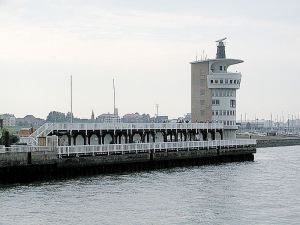Samasta syystä Alte Liebe näkötornista odotettavissa oleva näkymä Elbelle ja sitä seilaaville laivoille jäi väliin. Mitä sitä sateessa. Nettikuva Wikimedia Commonsista kertoo.